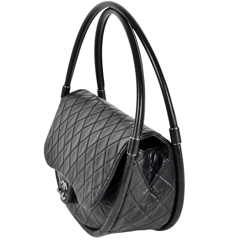 シャネル CHANEL マトラッセ フラフープ ハンドバッグ ラムスキン ブラック シルバー金具 ココマーク レディース【中古】