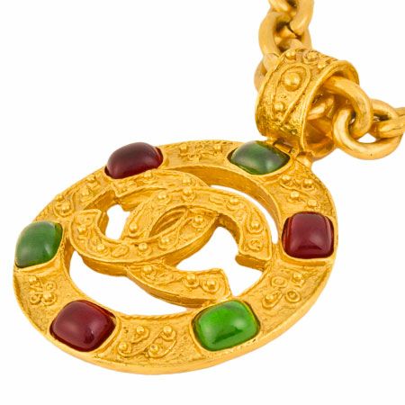 3. シャネル CHANEL ネックレス グリポア ココマーク カラーストーン(レッド・グリーン) 94A ゴールドメタル アクセサリー ヴィンテージ グリポワ【中古】