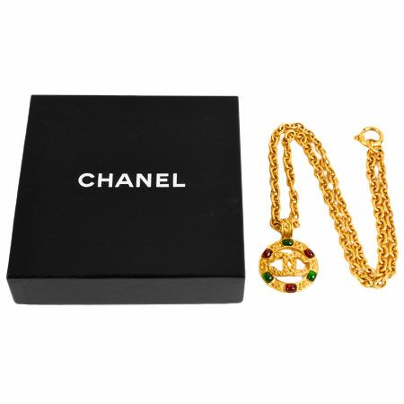 5. シャネル CHANEL ネックレス グリポア ココマーク カラーストーン(レッド・グリーン) 94A ゴールドメタル アクセサリー ヴィンテージ グリポワ【中古】