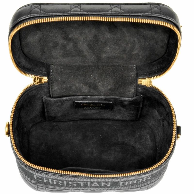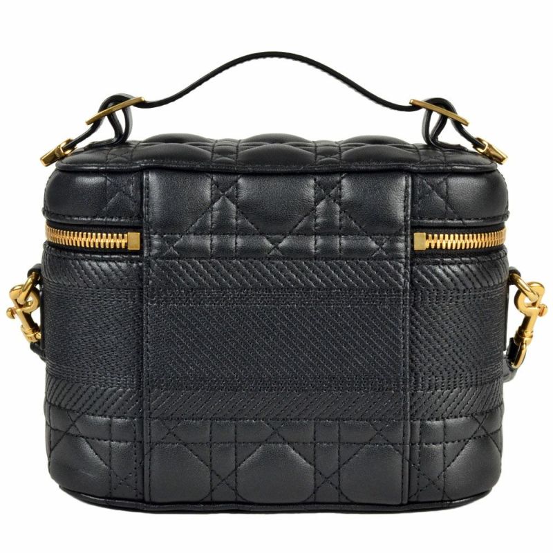 3. ディオール Dior バニティバッグ ショルダーバッグ レザー キャンバス ブラック【中古】