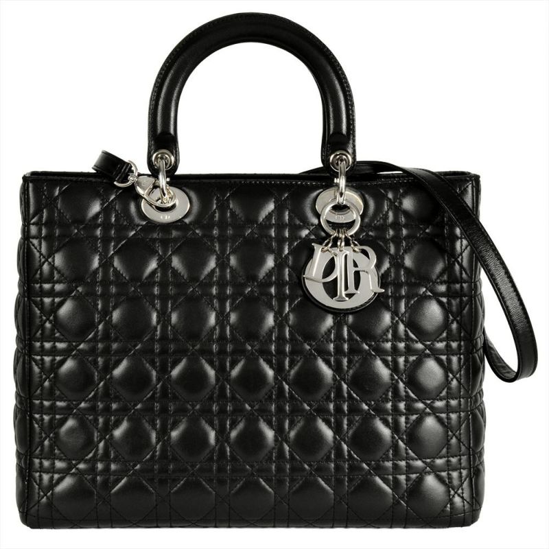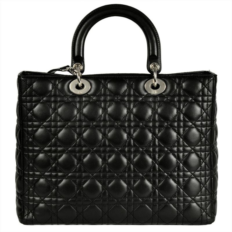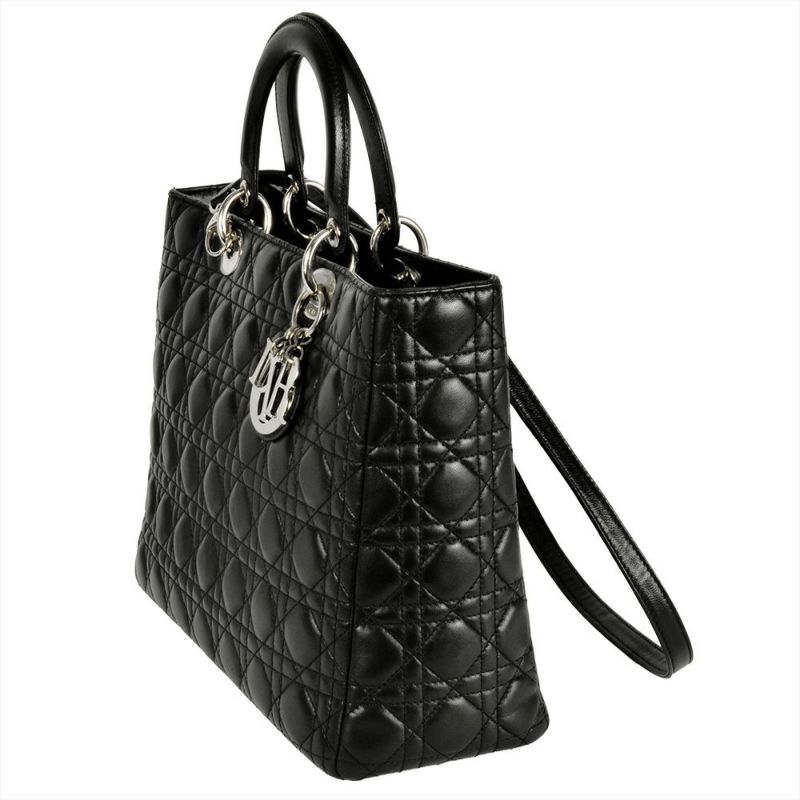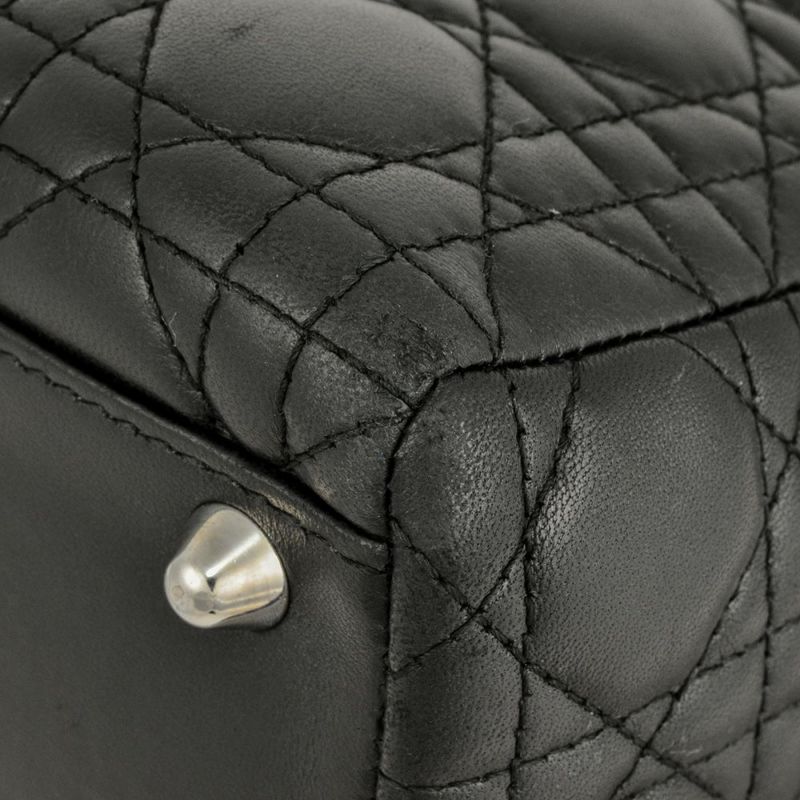 3. ディオール Dior レディディオール カナージュ ハンドバッグ ラムスキン ブラック シルバー金具【中古】