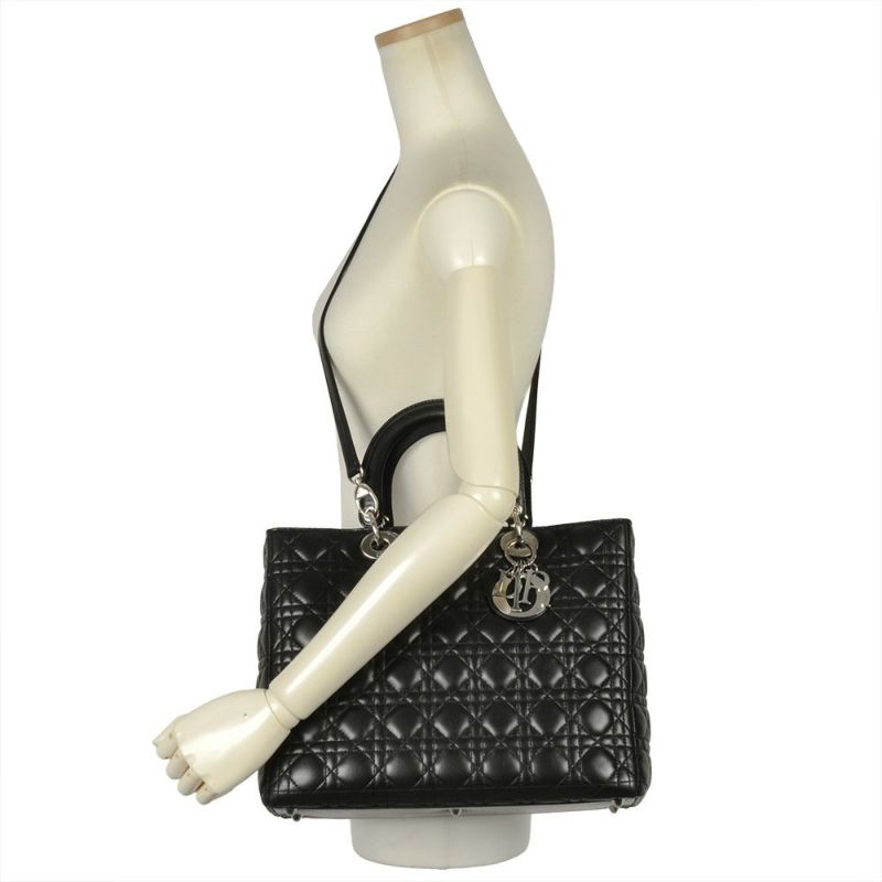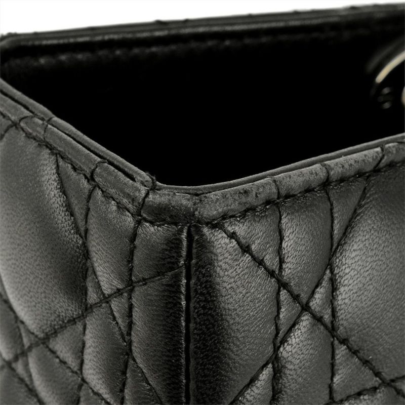 5. ディオール Dior レディディオール カナージュ ハンドバッグ ラムスキン ブラック シルバー金具【中古】