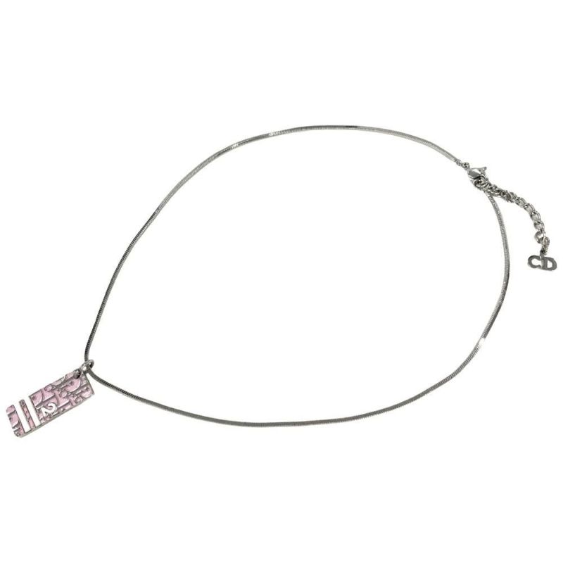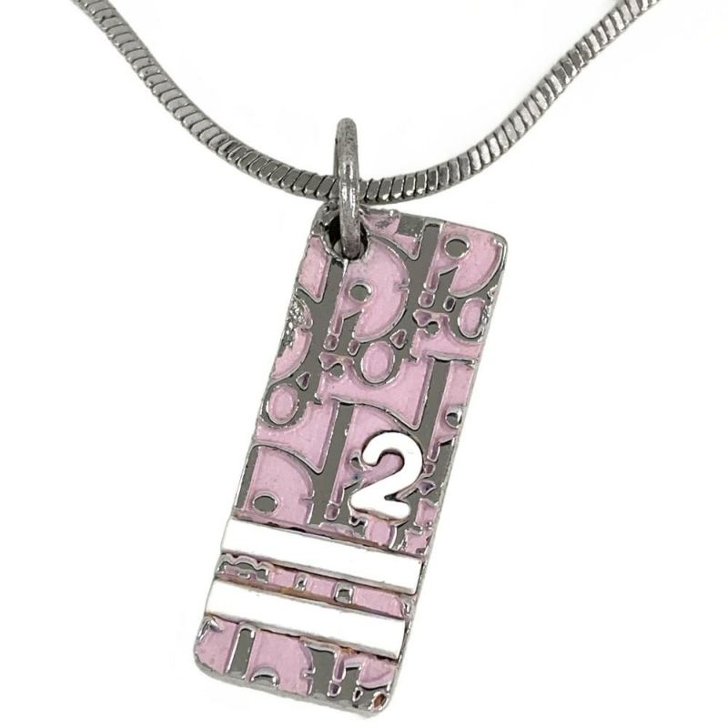 3. ディオール Dior トロッター ネックレス メタル ピンク プレート【中古】