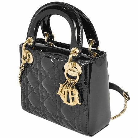 送料無料 クリスチャンディオール Christian Dior レディディオール ミニバッグ カナージュ パテントカーフスキン ハンドバッグ トートバッグ エナメル レザー ブラック【中古】