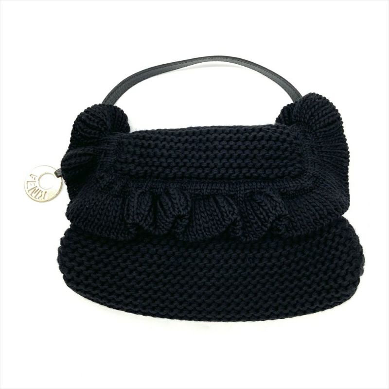 フェンディ FENDI ハンドバッグ ウール レザー 8BR445 ブラック チャーム付き レディース【中古】