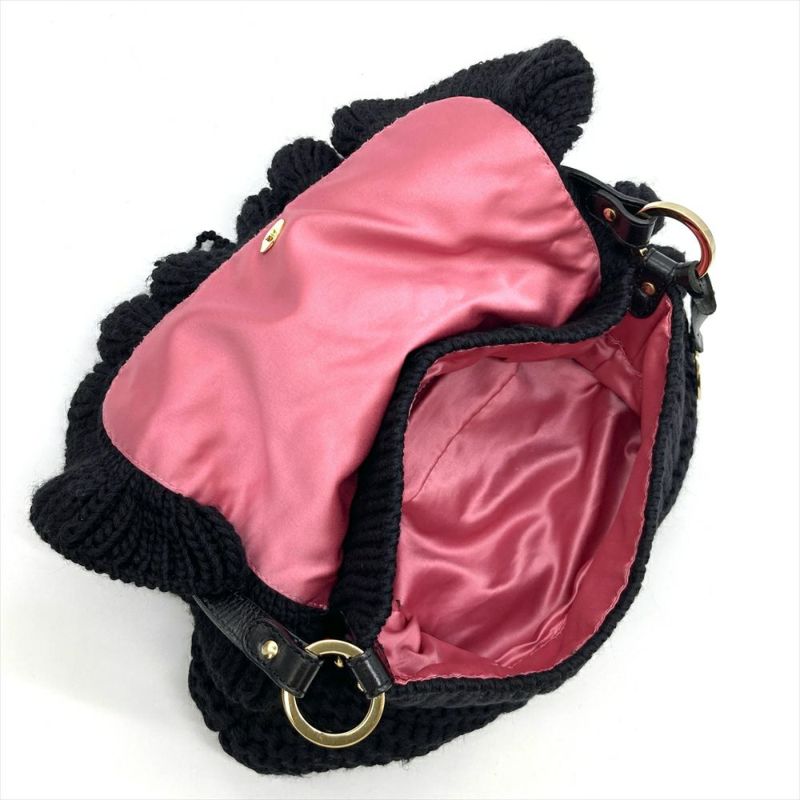 5. フェンディ FENDI ハンドバッグ ウール レザー 8BR445 ブラック チャーム付き レディース【中古】