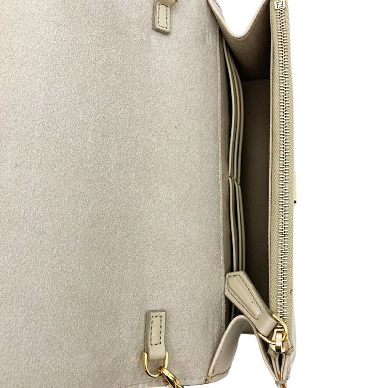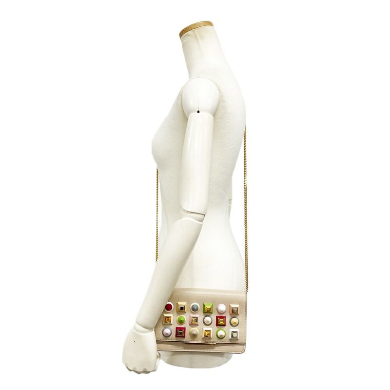 3. フェンディ FENDI マルチスタッズ チェーンウォレット ショルダーバッグ レザー 8M0346 ベージュ ゴールド金具 189-0189 レディース【中古】