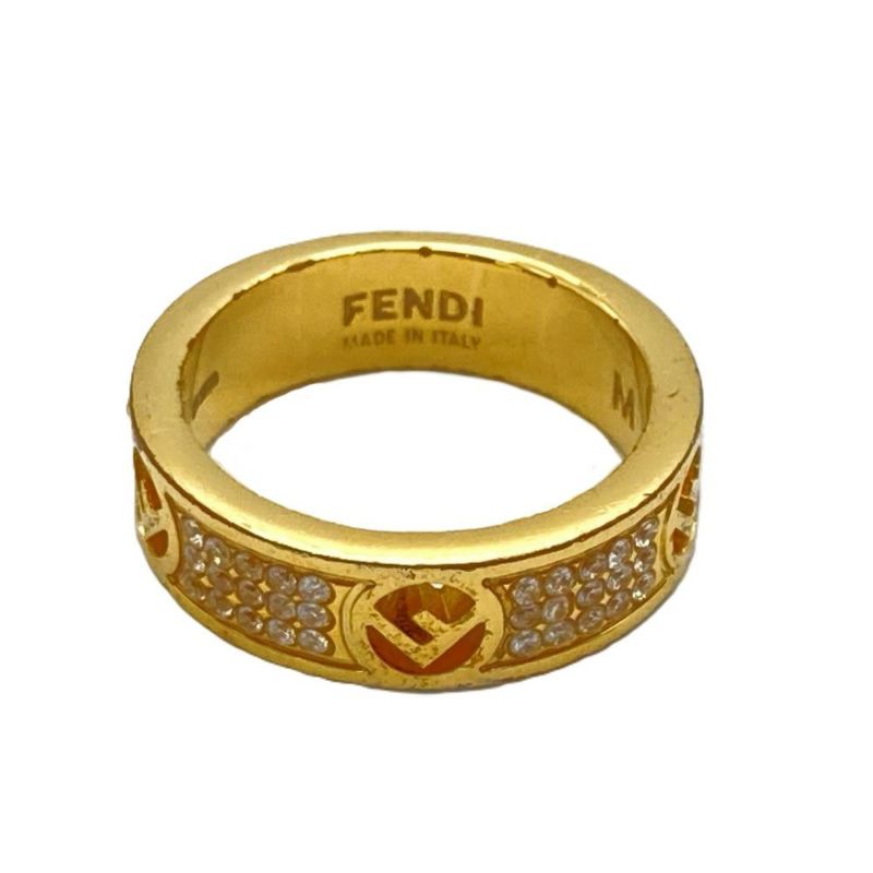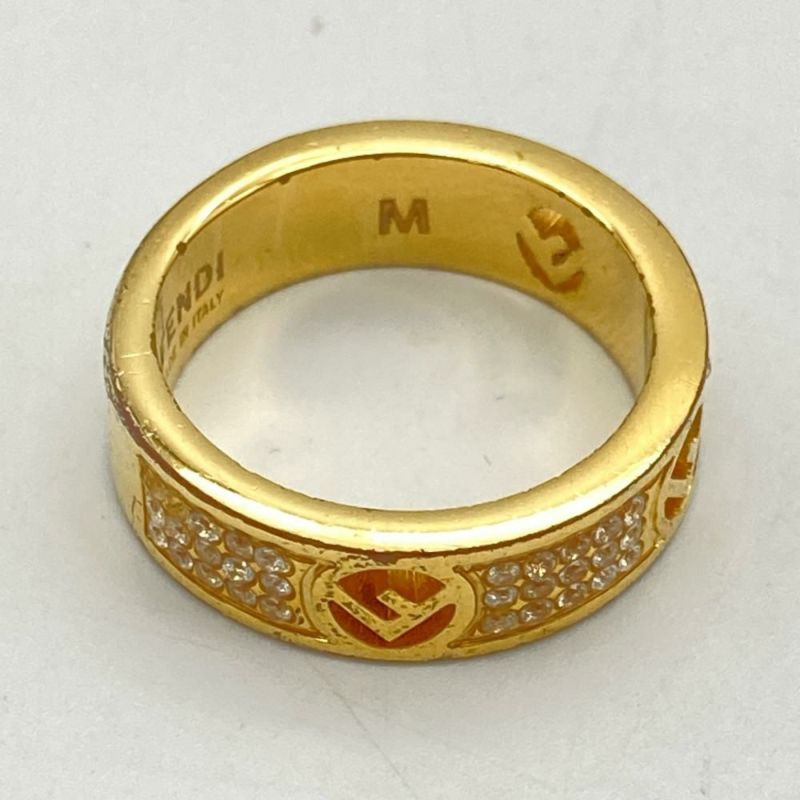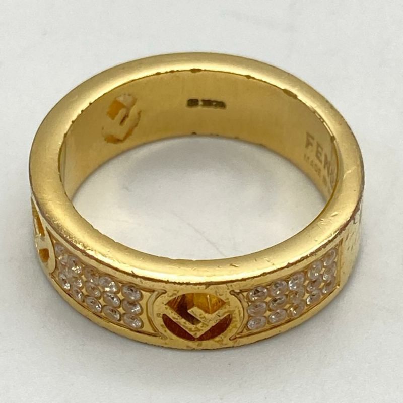 5. フェンディ FENDI エフイズ リング 指輪 M GPg ゴールド ラインストーン【中古】