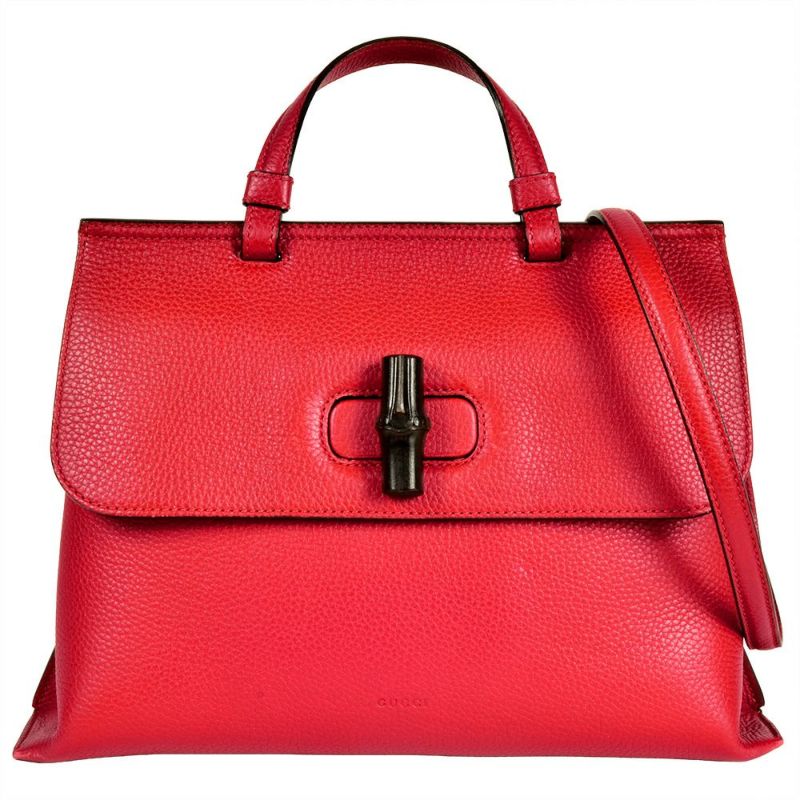 3. グッチ GUCCI デイリー ハンドバッグ 2WAY レザー バンブー 370831 レッド シルバー金具 レディース【中古】