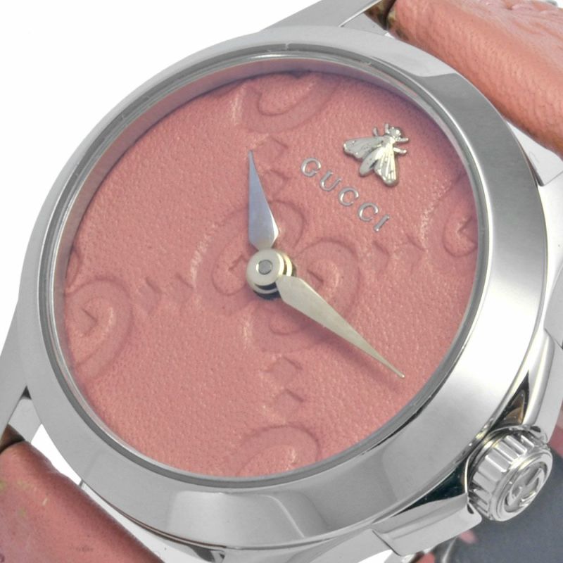 4. グッチ GUCCI 126.5 G タイムレス 腕時計 ピンク文字盤 レディース【中古】