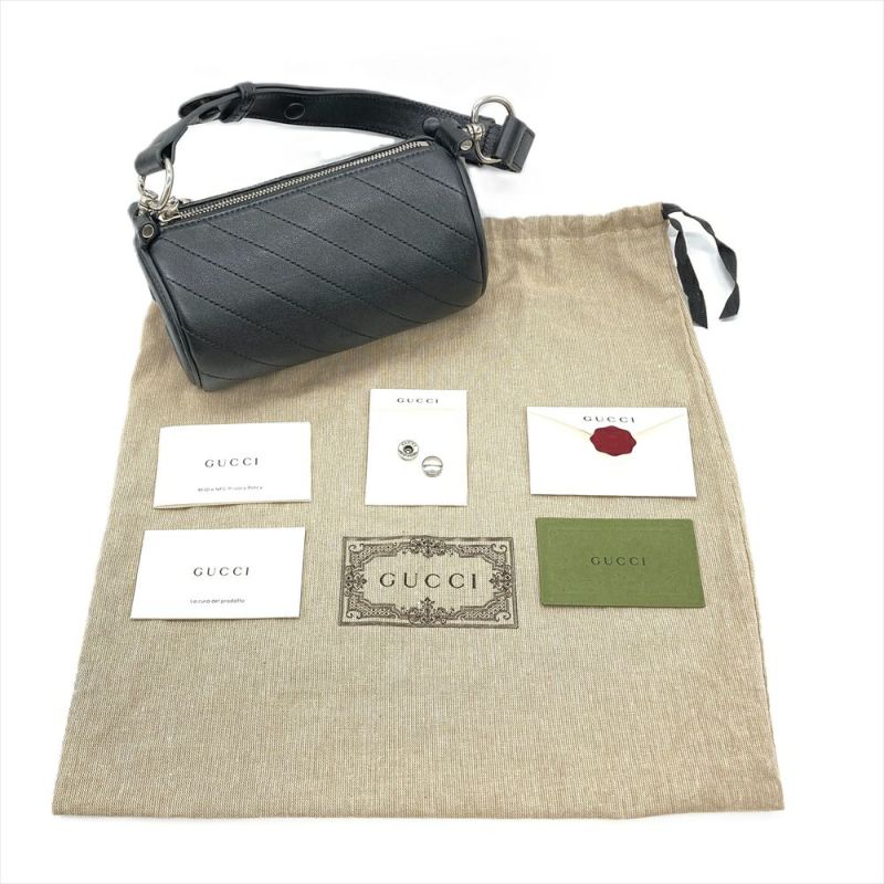 5. グッチ GUCCI ブロンディ ハンドバッグ レザー ブラック シルバー金具 筒型 レディース【中古】