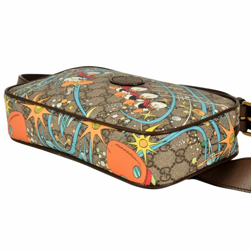 5. グッチ GUCCI ディズニーコラボ ドナルドダック ベルトバッグ ボディバッグ GGスプリームキャンバス レザー 602695 ブラウン ゴールド金具【中古】