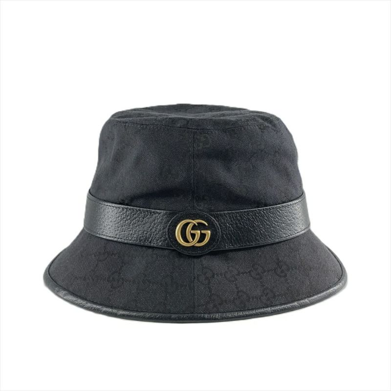 3. グッチ GUCCI バケットハット ハット GGキャンバス 576587 ブラック L 59cm フェドラハット GGマーモント【中古】