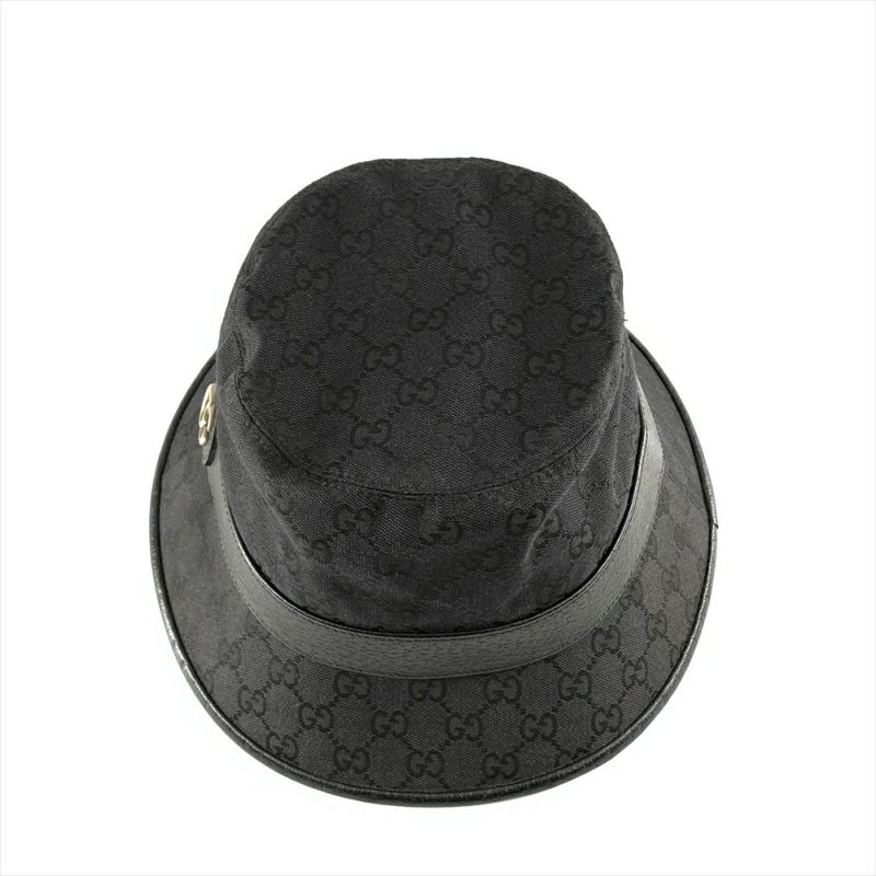 5. グッチ GUCCI バケットハット ハット GGキャンバス 576587 ブラック L 59cm フェドラハット GGマーモント【中古】