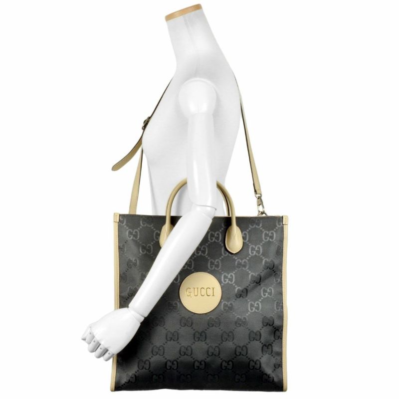 3. グッチ GUCCI オフ ザ グリッド トートバッグ 2WAY ナイロン レザー 630355 グレー GG柄 レディース【中古】