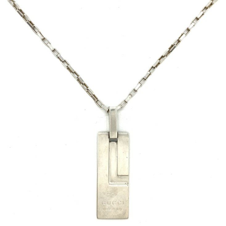5. グッチ GUCCI ロゴ プレート ネックレス 145170-J84008106 SV925 15.6g シルバー ユニセックス【中古】