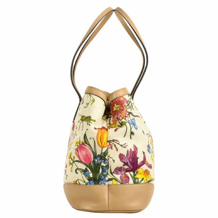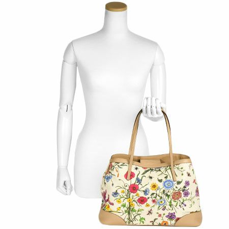 送料無料 グッチ GUCCI フローラ キャンバス レザー トートバッグ ベージュ 花柄 ハンドバッグ 358470 日本上陸50周年記念【中古】