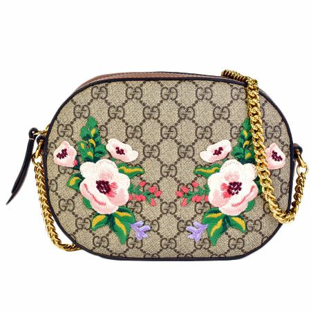 5. グッチ GUCCI チェーンショルダーバッグ GGスプリーム キャンバス レザー 花柄 ゴールド金具 刺繍 409535【中古】