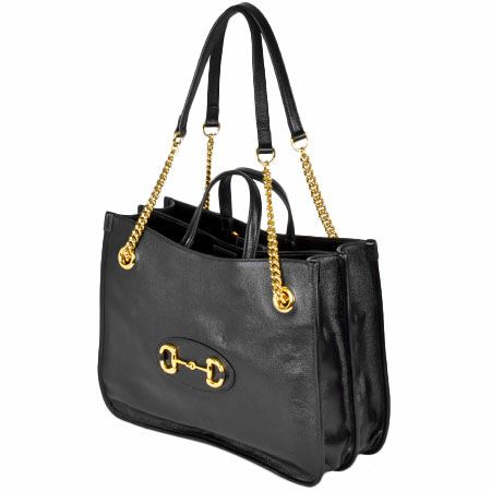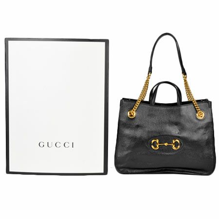 送料無料 グッチ GUCCI ミディアム トートバッグ ホースビット 1955 レザー ブラック ゴールド金具 621144【中古】