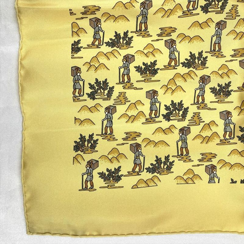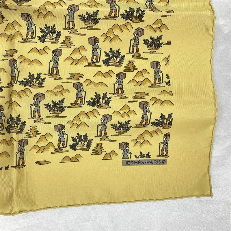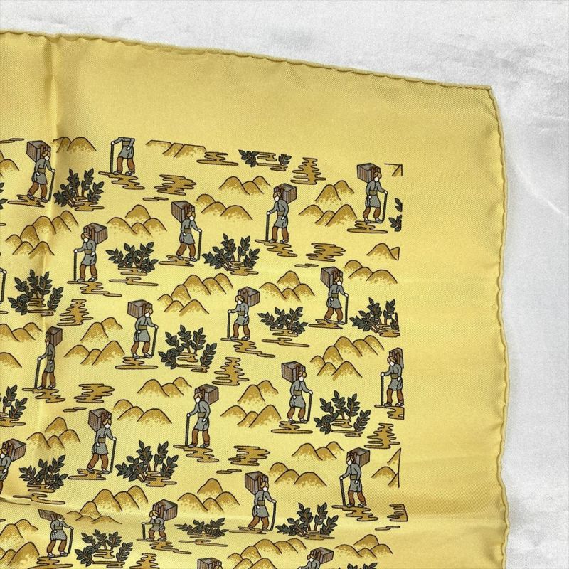 3. エルメス HERMES プチカレ42 山場 スカーフ シルク イエロー ヴィンテージ ユニセックス【中古】
