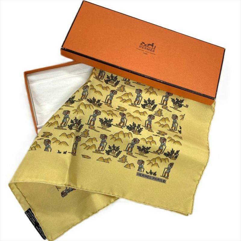 エルメス HERMES プチカレ42 山場 スカーフ シルク イエロー ヴィンテージ ユニセックス【中古】