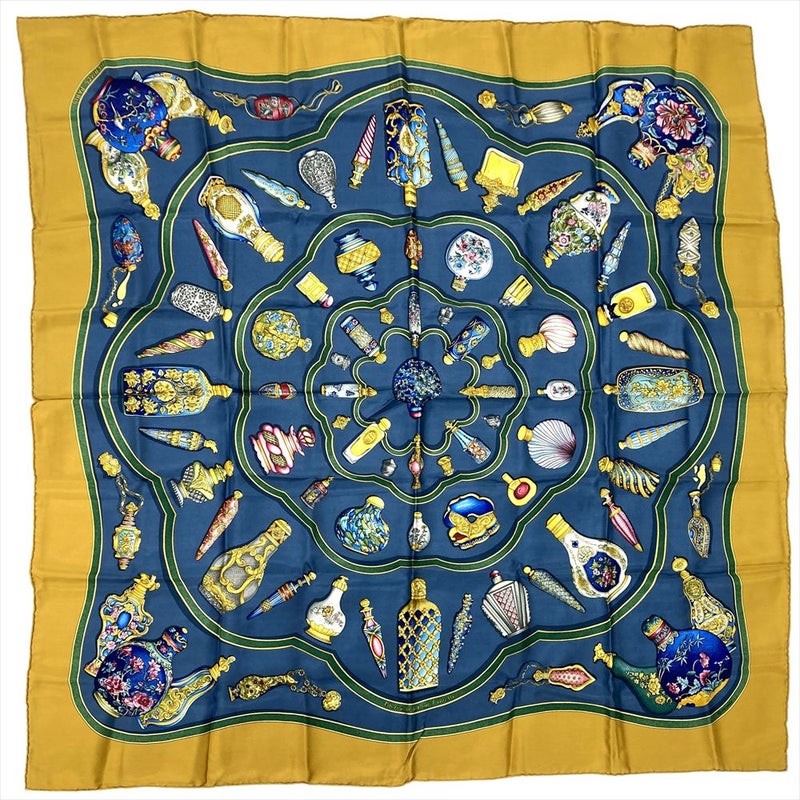 エルメス HERMES カレ90 Pourvu qu'on ait l'ivresse 香水瓶 スカーフ シルク ブルー イエロー レディース【中古】