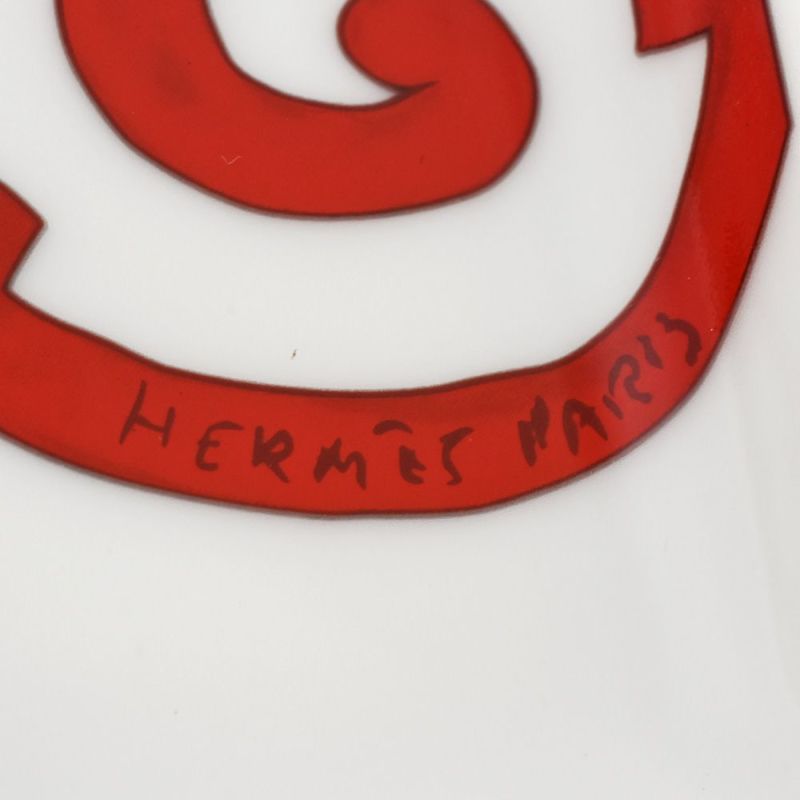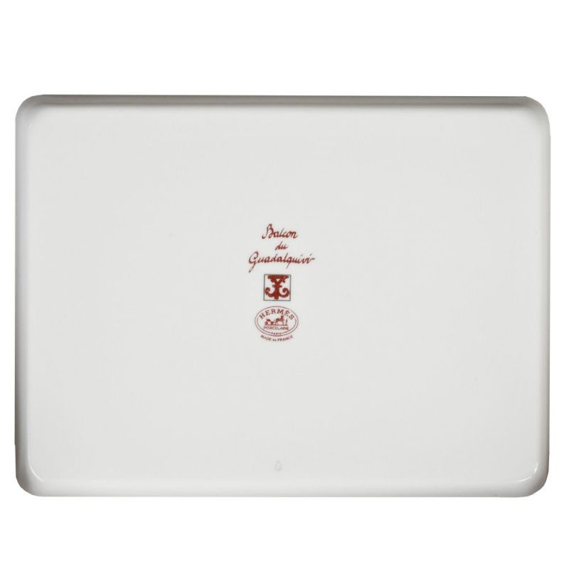 5. エルメス HERMES ガダルキヴィール スクエアプレート トレー 皿 陶器 ホワイト レッド【中古】