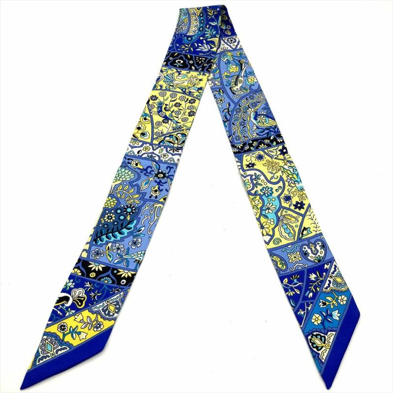 エルメス HERMES ツイリー 花咲く鳥たちの国で Au Pays des Oiseaux Fleurs スカーフ 85.5cm ブルー レディース【中古】