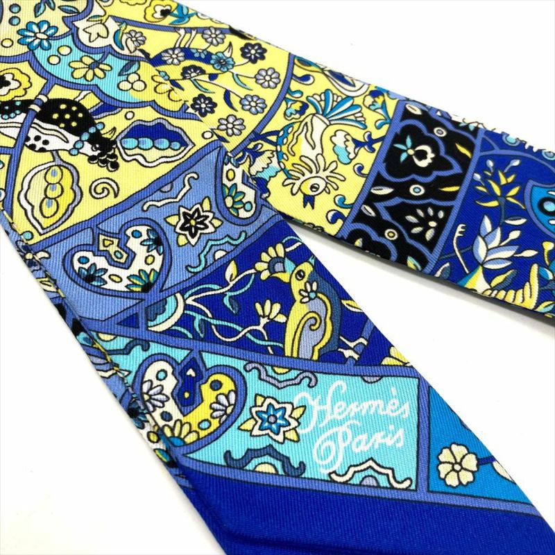 5. エルメス HERMES ツイリー 花咲く鳥たちの国で Au Pays des Oiseaux Fleurs スカーフ 85.5cm ブルー レディース【中古】