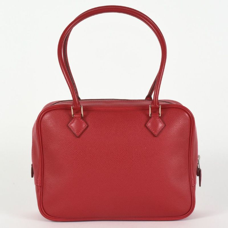 3. エルメス HERMES プリュム20 ハンドバッグ ヴォーエプソン □H(2004年製造)刻印 レッド シルバー金具【中古】