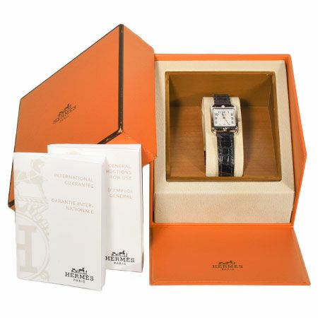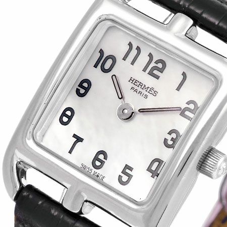 - エルメス HERMES ケープコッド K18WG レディース クォーツ 時計 □F刻印(2002年製造) ブラック アリゲーター ホワイトシェル文字盤 CC1.190【中古】