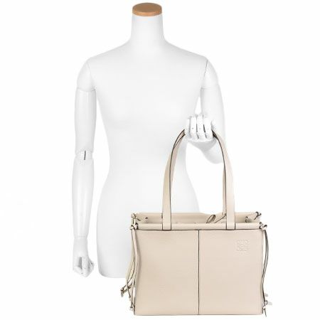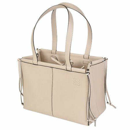 4. ロエベ LOEWE クッショントート スモール トートバッグ レザー グレージュ 309.12AA93【中古】