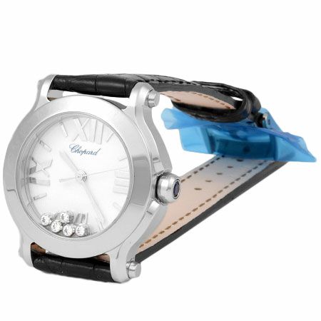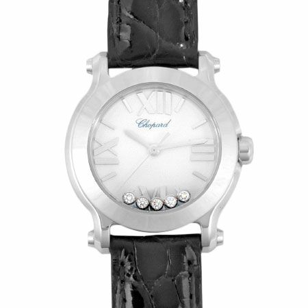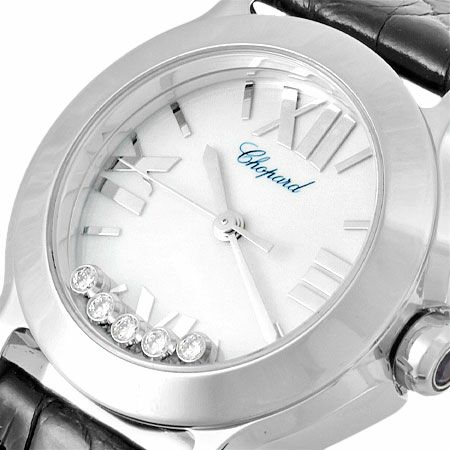 - ショパール Chopard ハッピースポーツ マーク2 5P ダイヤモンド レディース クォーツ 時計 SS 白文字盤 アリゲーターストラップ 278509-3001 27/8509【中古】