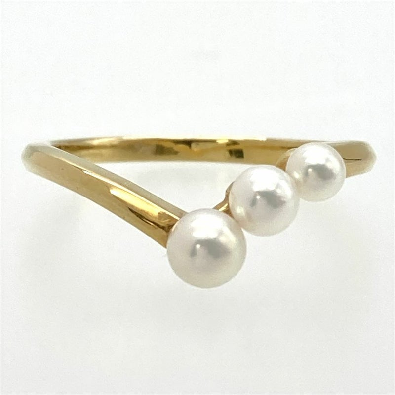 4. ミキモト MIKIMOTO ベビーパール 3P リング 指輪 約11号 K18YG 2.4g 真珠 イエローゴールド レディース【中古】