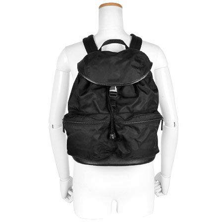 3. プラダ PRADA バックパック ナイロン レザー リュック ブラック V164【中古】