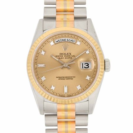 - ロレックス ROLEX デイデイト トリドール 18239BIC W番 10P ダイヤモンド WG/YG/PG メンズ 自動巻き 時計 コパー文字盤【中古】