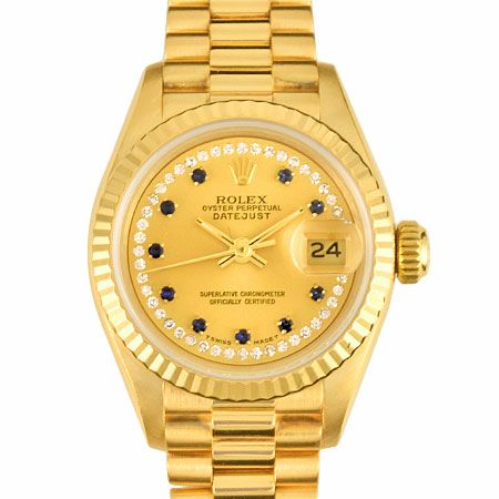- ロレックス ROLEX デイトジャスト 69178LS 10Pサファイア サークルダイヤ K18YG 95番 レディース 自動巻き 時計 金無垢 シャンパン文字盤【中古】