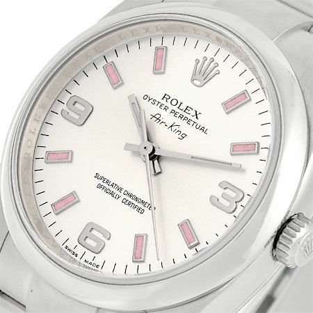 - ロレックス ROLEX エアキング 114200 SS M番 メンズ 自動巻き 時計 ピンクバーインデックス シルバー文字盤【中古】