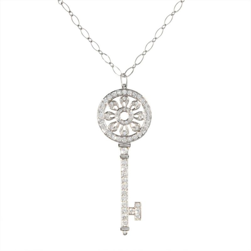 3. ティファニー Tiffany&Co. ペタルキー ネックレス ダイヤモンド Pt950 13.1g K18WG プラチナ ホワイトゴールド レディース【中古】