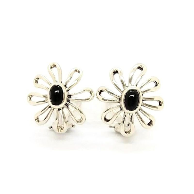 4. ティファニー Tiffany&Co. デイジー フラワー ピアス オニキス SV925 7.5g シルバー パロマピカソ 【中古】