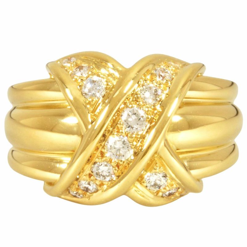 ティファニー Tiffany&Co. シグネチャー クロス リング 指輪 ダイヤモンド 約12号 K18YG 10.6g【中古】