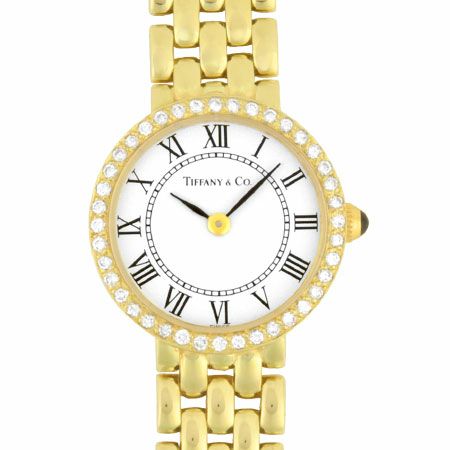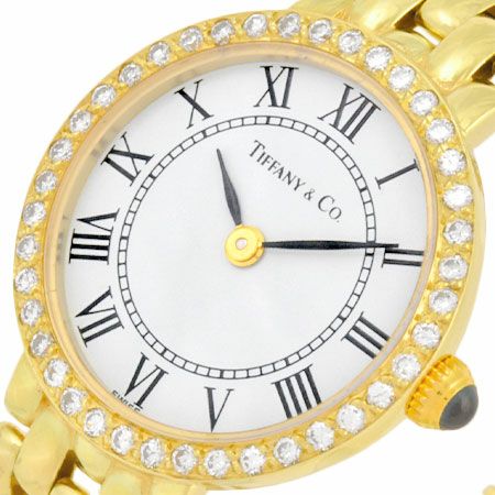 3. ティファニー Tiffany&Co. ラウンド K14YG ダイヤベゼル クォーツ レディース 腕時計 ホワイト文字盤【中古】