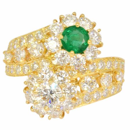 4. ヴァンクリーフ&アーペル Van Cleef&Arpels スノーフレイク ダブルフラワー ダイヤモンド エメラルド リング K18YG #12.5 ヴィンテージ フルーレット【中古】