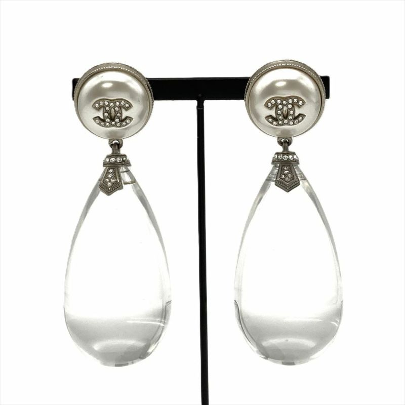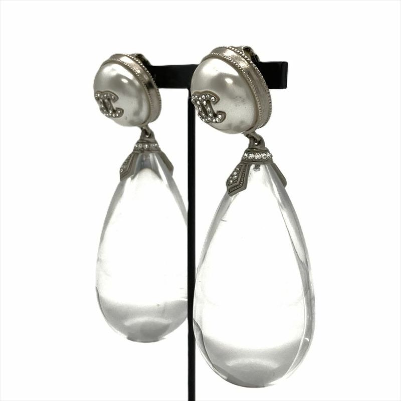 4. シャネル CHANEL ティアドロップ イヤリング A18S ラインストーン フェイクパール クリスタル【中古】