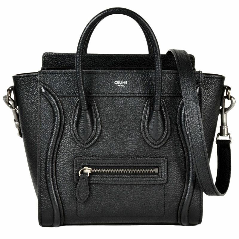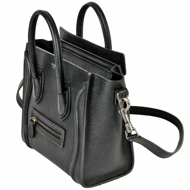 セリーヌ CELINE ラゲージ ナノショッパー ハンドバッグ 2WAY レザー 189243 ブラック ショルダーバッグ レディース【中古】