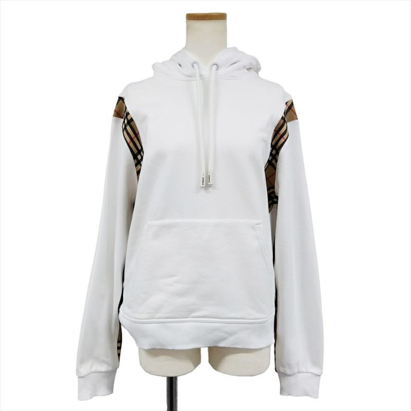 4. バーバリー BURBERRY ヴィンテージチェックパネル フーディ パーカー コットン 8032129 ホワイト スウェット ノバチェック【中古】