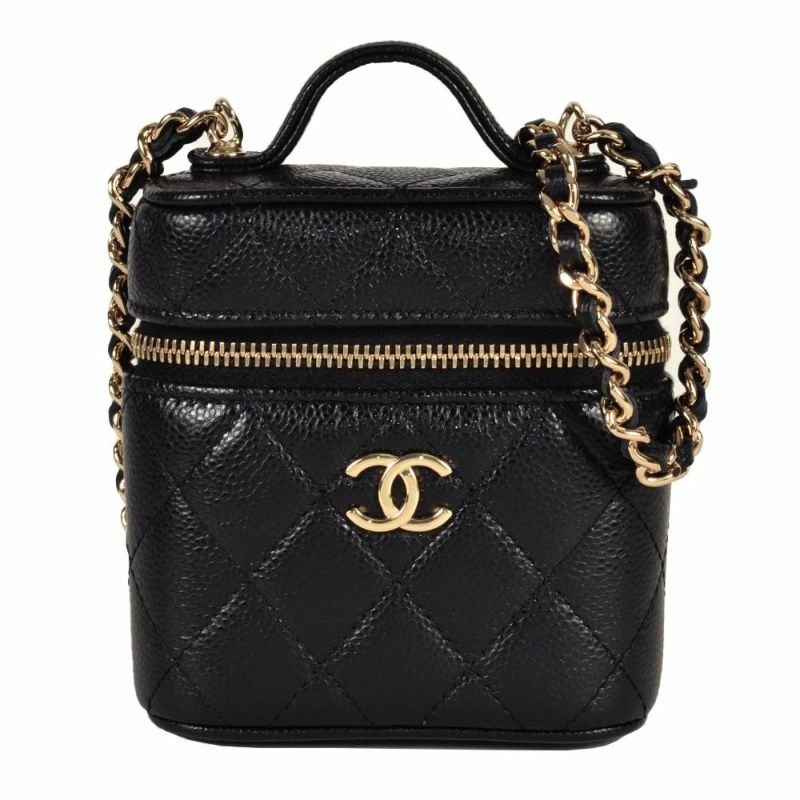 5. シャネル CHANEL マトラッセ ミニバニティ ショルダーバッグ キャビアスキン ブラック ゴールド金具 ココマーク 31番台【中古】