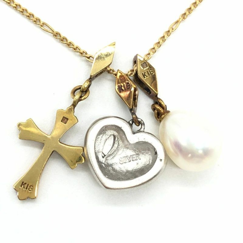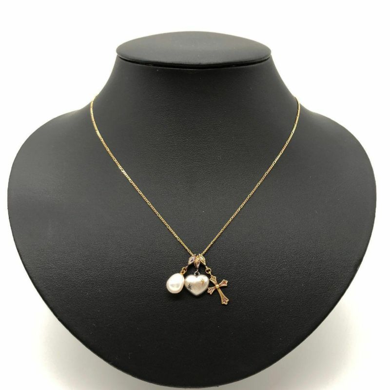 - ミキモト MIKIMOTO ペルリータ PERLITA ネックレス K18YG 5.6g シルバー 淡水パール イエローゴールド ハート クロス レディース【中古】