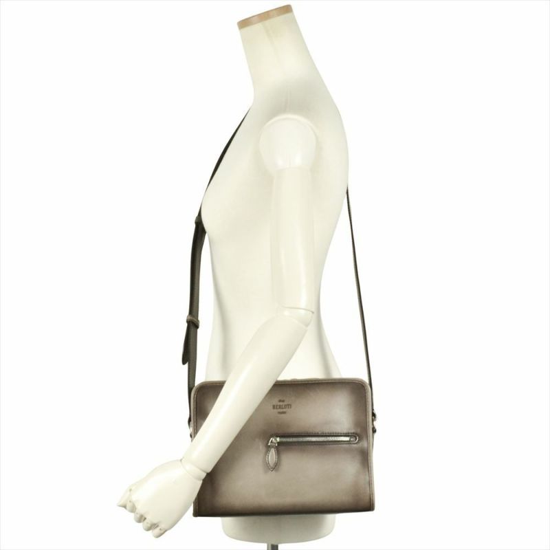 3. ベルルッティ Berluti ジュルナリエ メッセンジャーバッグ レザー グレー ショルダーバッグ メンズ【中古】