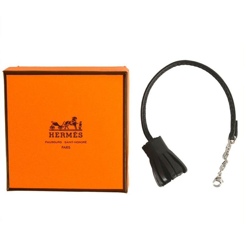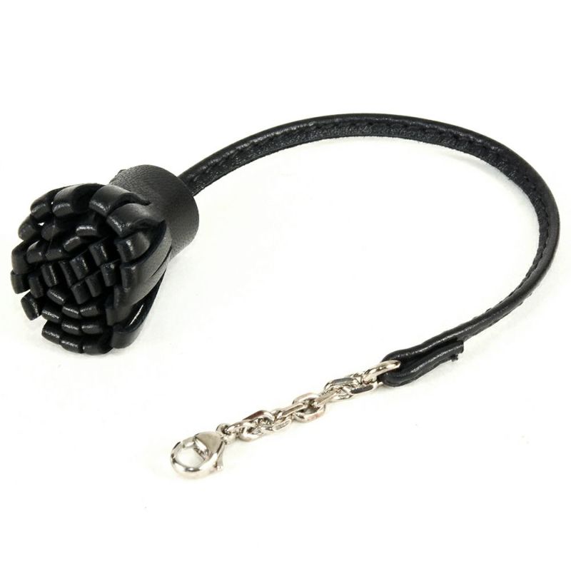 4. エルメス HERMES カルメンチータ チャーム レザー しおり ブックマーク ブラック ユニセックス【中古】